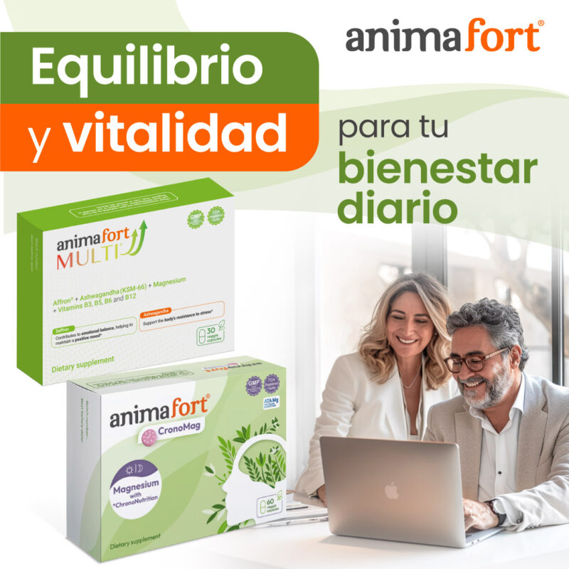AnimaFort MULTI está enfocado en el equilibrio emocional y la resistencia al estrés, gracias a los beneficios de extractos naturales como el azafrán y la ashwagandha. Su objetivo principal es ayudar a manejar el estrés, mejorar el estado de ánimo y mantener la estabilidad emocional. Por ello, puede ser un buen aliado.